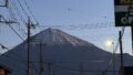 Today offers perfect visibility. As you can see in the photo I took near the station (right by the Nissan Rent-a-car sign), the mountain is visible in its full, massive glory. Even the birds perched on the power lines seem to be enjoying the view! The contrast between the deep blue sky and the white peak is stunningly sharp.